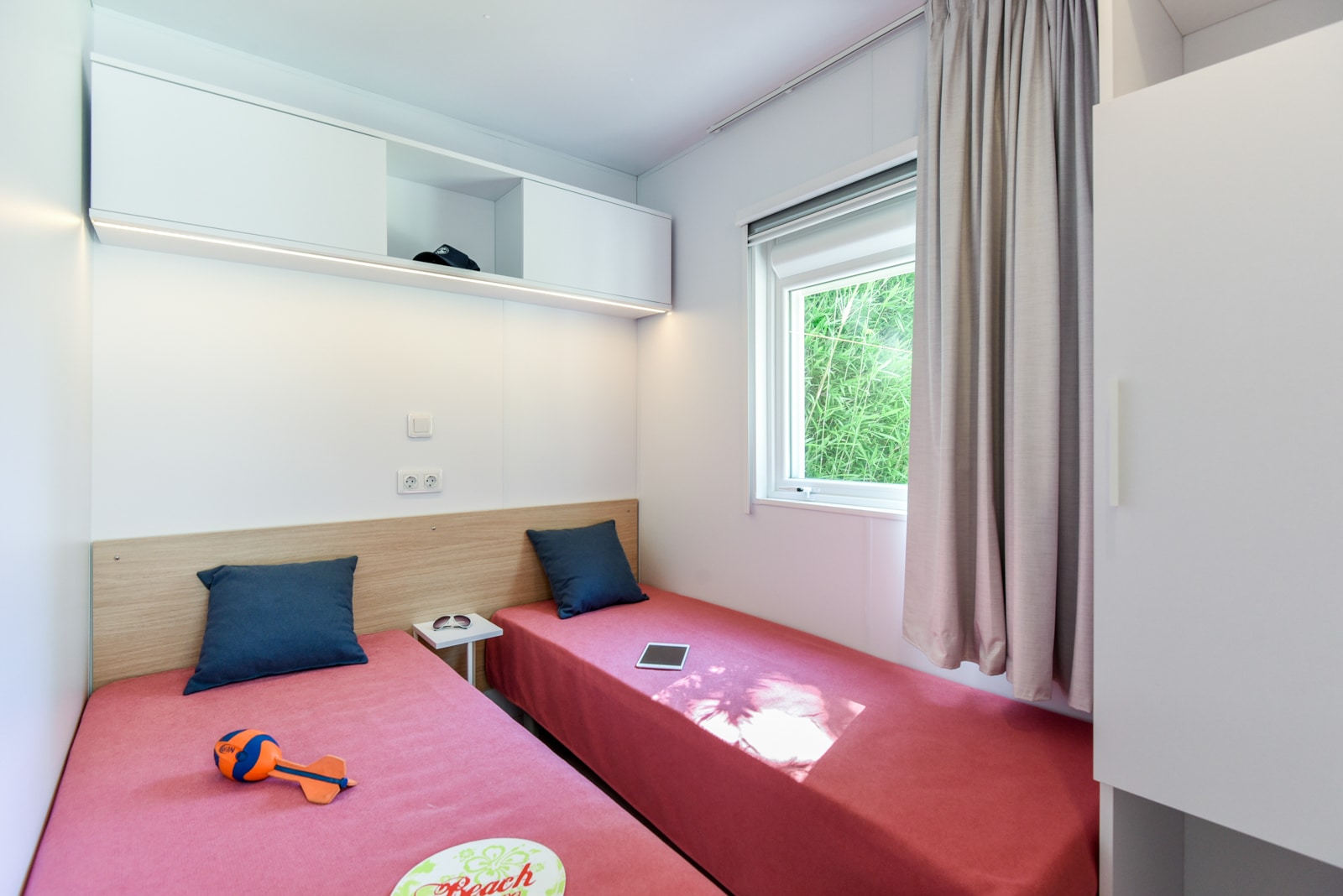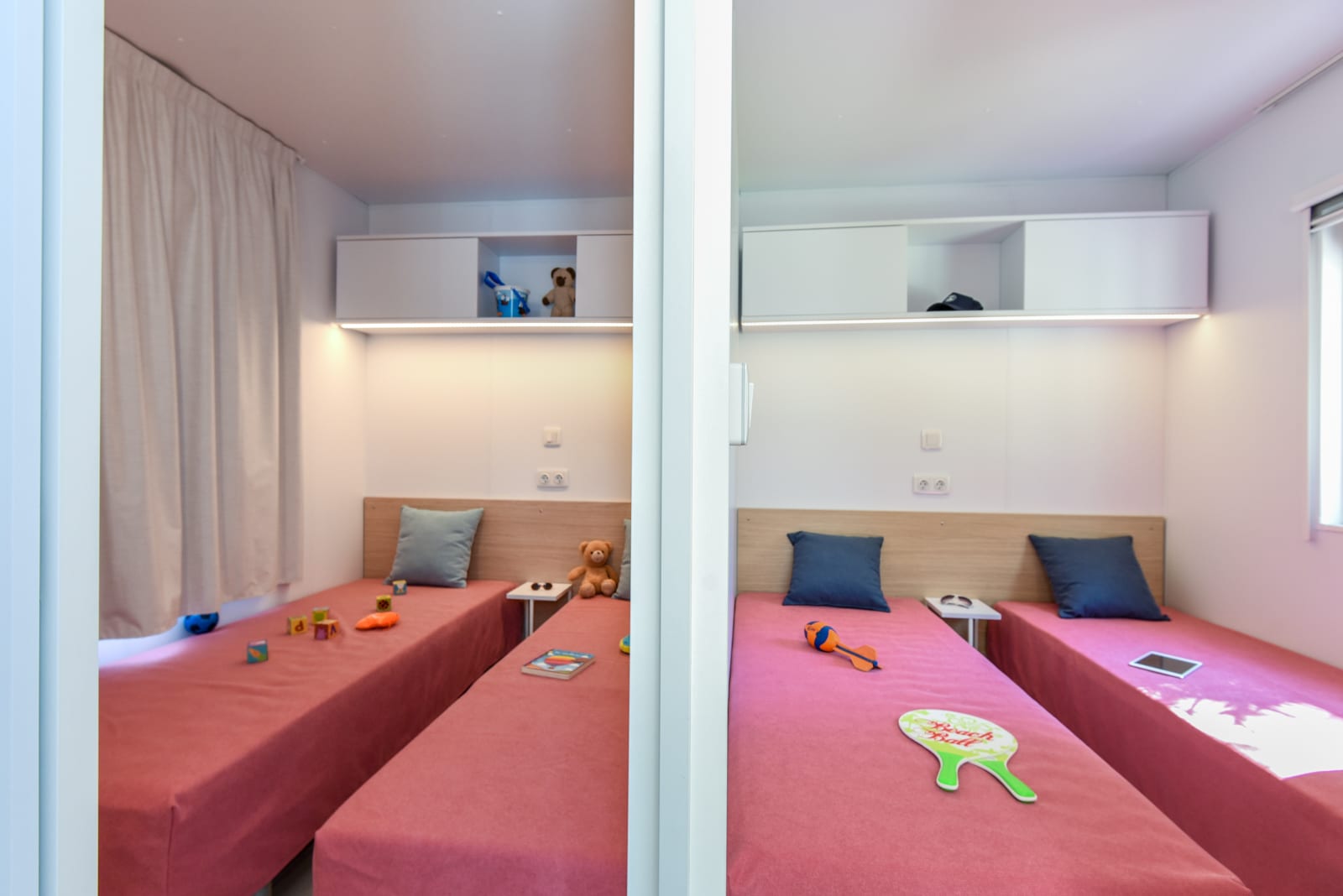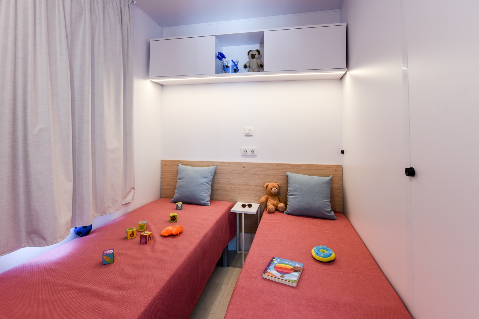 Las dos habitaciones infantiles son perfectas para recibir a los pequeños aventureros de la familia. Están equipadas con tres camas de 80 x 190 cm y una cama de 70 x 190 cm con una práctica barandilla desmontable para bebé. Cada miembro de la familia dispondrá de su propio espacio para descansar.