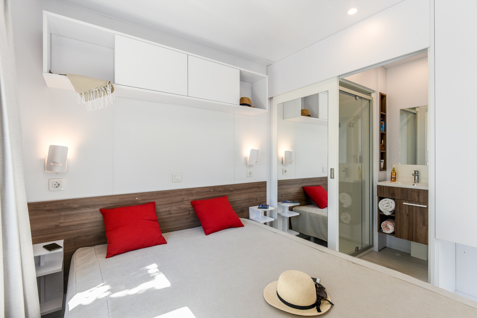 Sin importar la estación, siempre estará cómodo gracias al aire acondicionado reversible, que le permite regular la temperatura según sus preferencias. La habitación principal es un verdadero refugio de paz, con una cama de 160 x 200 cm y su baño privado, que brindan intimidad y confort.